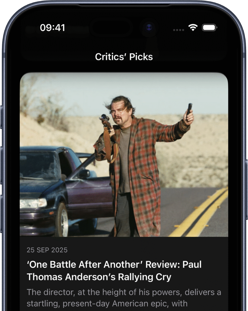 An iOS app that shows New York Times movie reviews with a focus on Critics’ Picks.
