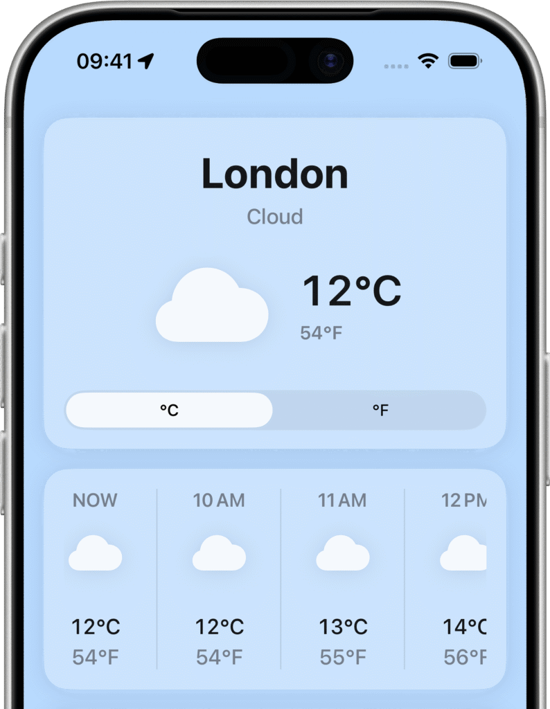 A weather app that displays temperatures in Celsius and Fahrenheit at the same time.